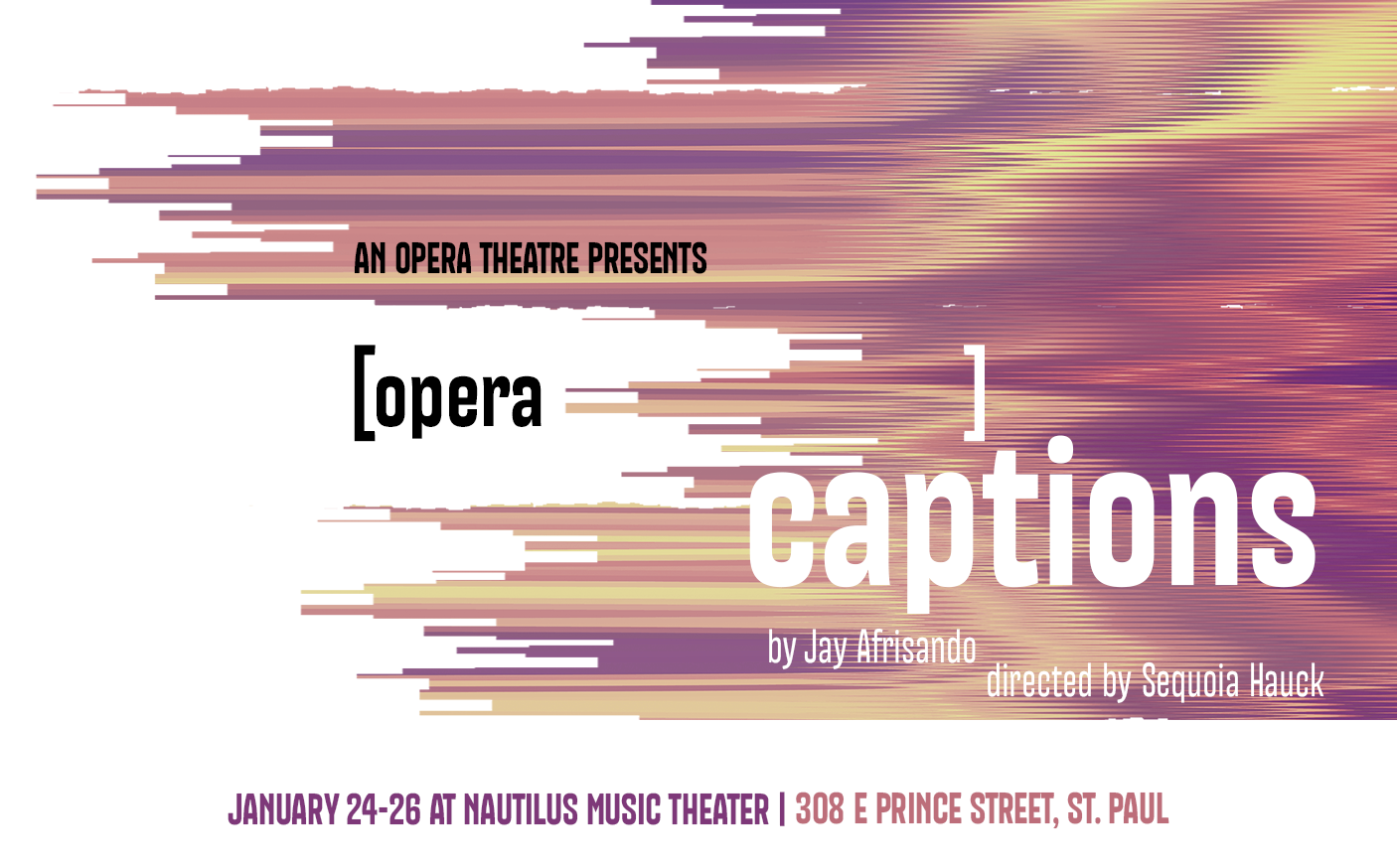 [opera captions] is a music-theater-film-translation-poetry performance that reimagines what captions as an “actor” can do beyond functioning as a communication conveyor and sound interpreter in audiovisual media while interacting with and personified by both Deaf and hearing-abled humans.
